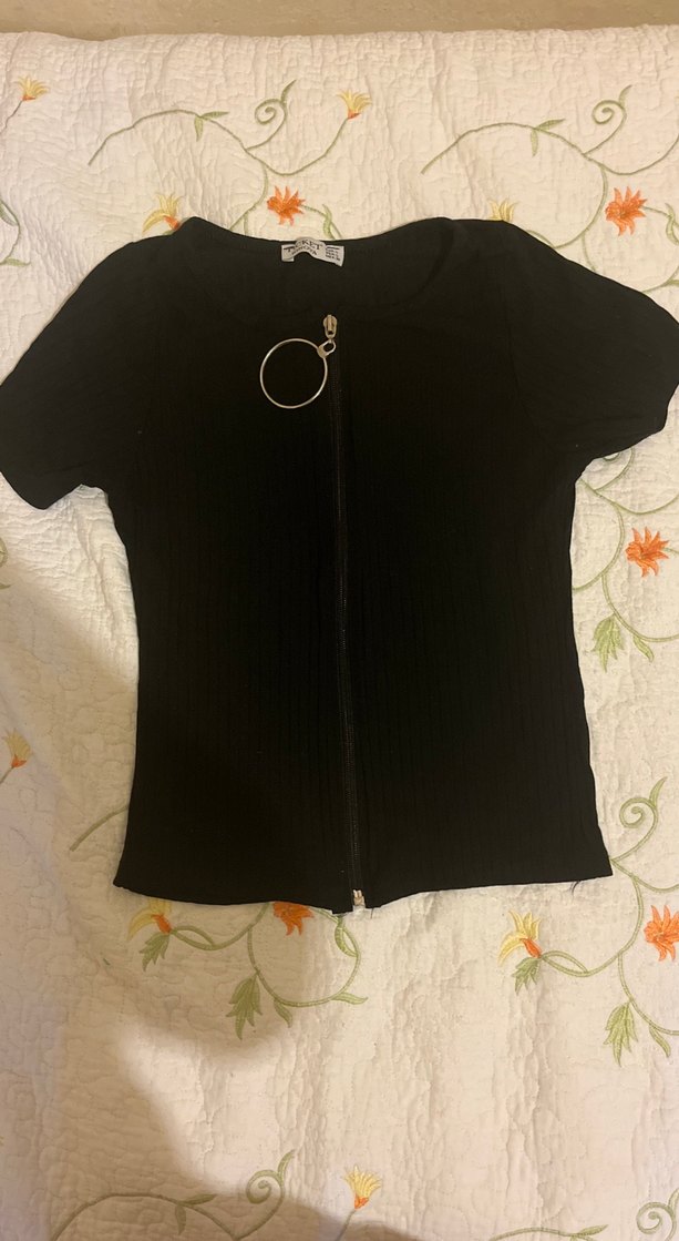 Fermuarlı Siyah Kısa Kollu Kadın bluz
