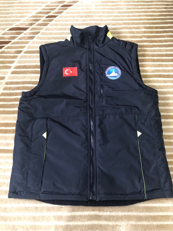 Kolsuz, boğazlı ve fermuarlı bu erkek yeleği, kısa ve dar kesimdir. Yumuşak ve sıcak kumaştan üretilmiş, dış mekan kullanımı için uygundur.