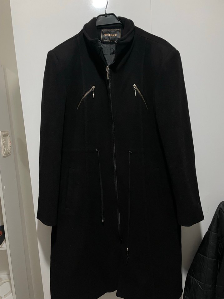 Fermuarlı detaylara sahip siyah midi kaban, keskin yaka ve askılı kollarıyla rahat bir uyum sunar. Yumuşak ve sıcak kumaştan, günlük kullanıma uygun goth tarzında.