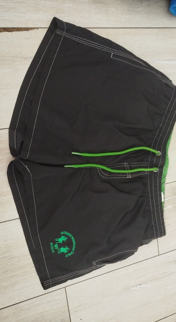 Fermuarlı cep ve yeşil bağcık detaylı, sokak stiline uygun siyah mini erkek deniz şortu. ️