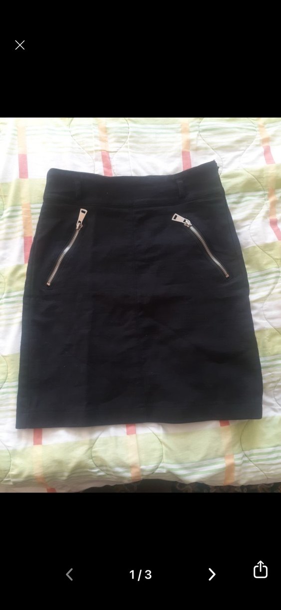 Fermuarlı iki cep detaylı, sentetik kumaştan yapılmış siyah, vücuda oturan mini etek. Günlük gotik tarz için uygundur. Boyu 44 cm sapasağlam