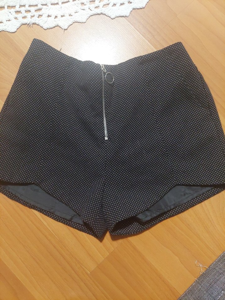 Ön fermuarlı, düz siyah mini şort. Günlük sokak stiline uygun, sentetik kumaştan yapılmıştır.