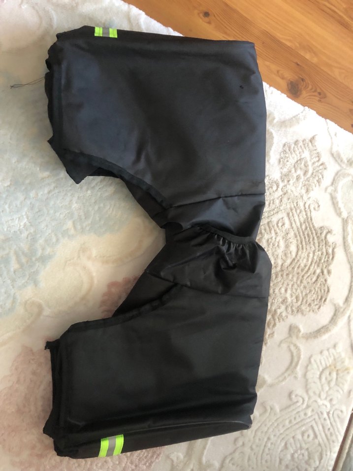 Fermuarlı, siyah renkli, sentetik kumaştan yapılmış, biker tarzı motosiklet diz koruyucuları. Rahat ve desensiz tasarım. ️