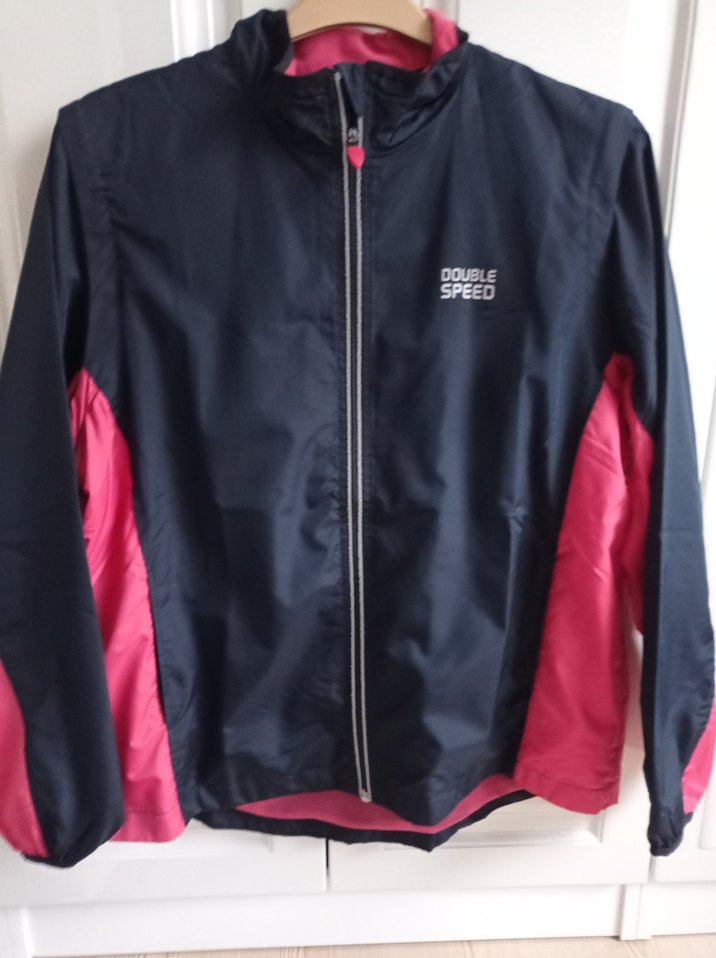 Fermuarlı, uzun kollu, siyah ve koyu pembe baskılı spor tarzda erkek ceketi. Sentetik kumaştan, dar kesim ve günlük kullanıma uygun.almanyadan alındı marka temsilidir kolları fermuarlı çıkarılıp yelek olabiliyor arkada cep detayı var