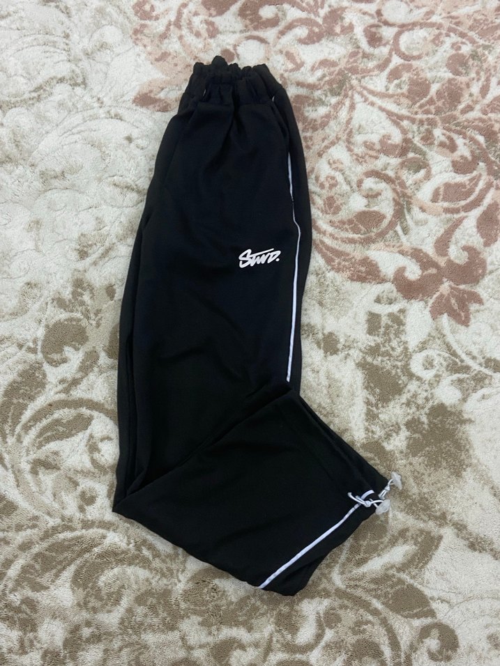 Yumuşak kumaştan, detaylı ve bol kesimli siyah eşofmanı, günlük rahat kullanım için uygundur.