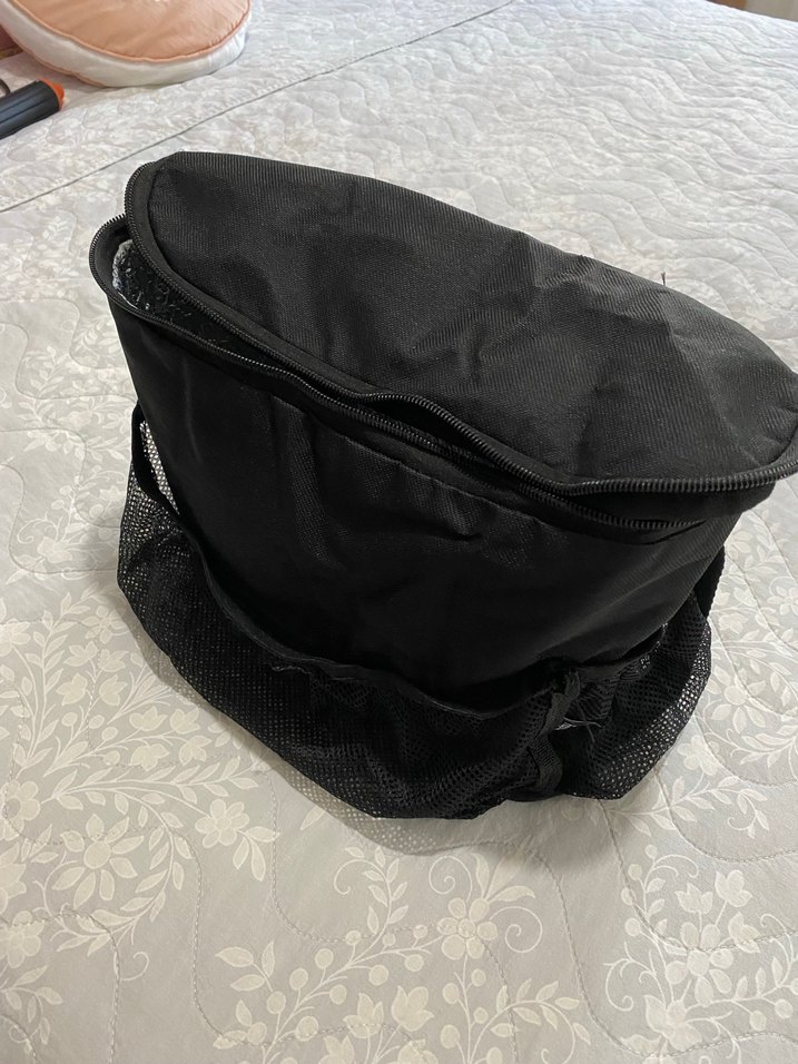 Fermuarlı üst kısmı ve file yanlarıyla siyah saklama çantası, pratik ve havalandırmalı depolama sağlar.