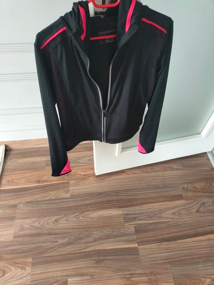 Fermuarlı, uzun kollu, yüksek yakalı, sentetik kumaştan yapılmış, siyah ve pembe detaylı, spor ve sokak giyimine uygun dar eşofman ustu10/11 yaş icin