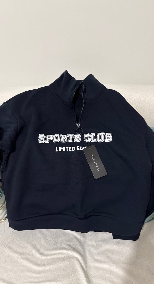 Fermuarlı, uzun kollu, yüksek yakalı siyah sweatshirt. "SPORTS CLUB LIMITED EDITION" baskılı, yumuşak ve sıcak kumaştan üretilmiştir.
