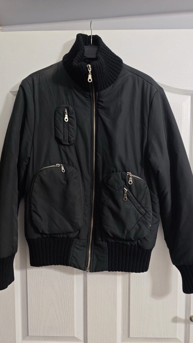 Fermuarlı, yüksek yakalı siyah kadın ceket. Uzun kollu, yumuşak ve sıcak kumaştan. Çoklu fermuarlı cepleri ve normal boyu ile rahat sokak tarzı için uygun.