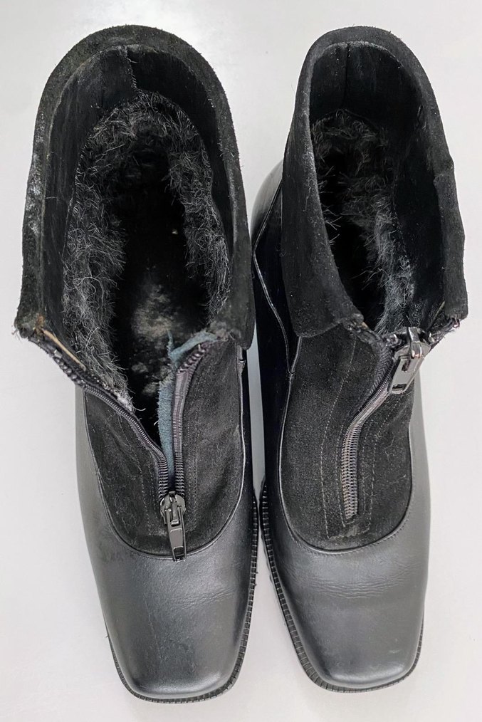 Fermuarlı kapama, süet malzeme ve dolgu topuklu siyah kadın botları. İç kısmı yumuşak ve sıcak tutar, günlük kullanıma uygundur.