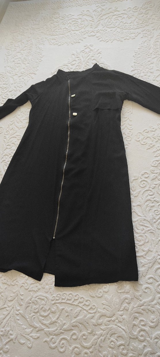 Fermuarlı Siyah Uzun Kadın Kap
