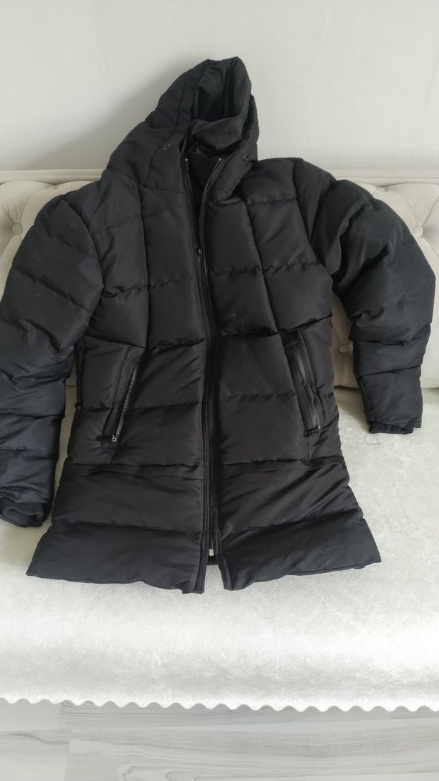 Fermuarlı cepleri ve yüksek yakası olan, yumuşak ve sıcak kumaştan yapılmış siyah uzun kesim kadın kışlık mont. Rahat günlük sokak stili için uygundur. ❄️ İki koltuk arası 55 boyu 84 kol uzunluğu 64