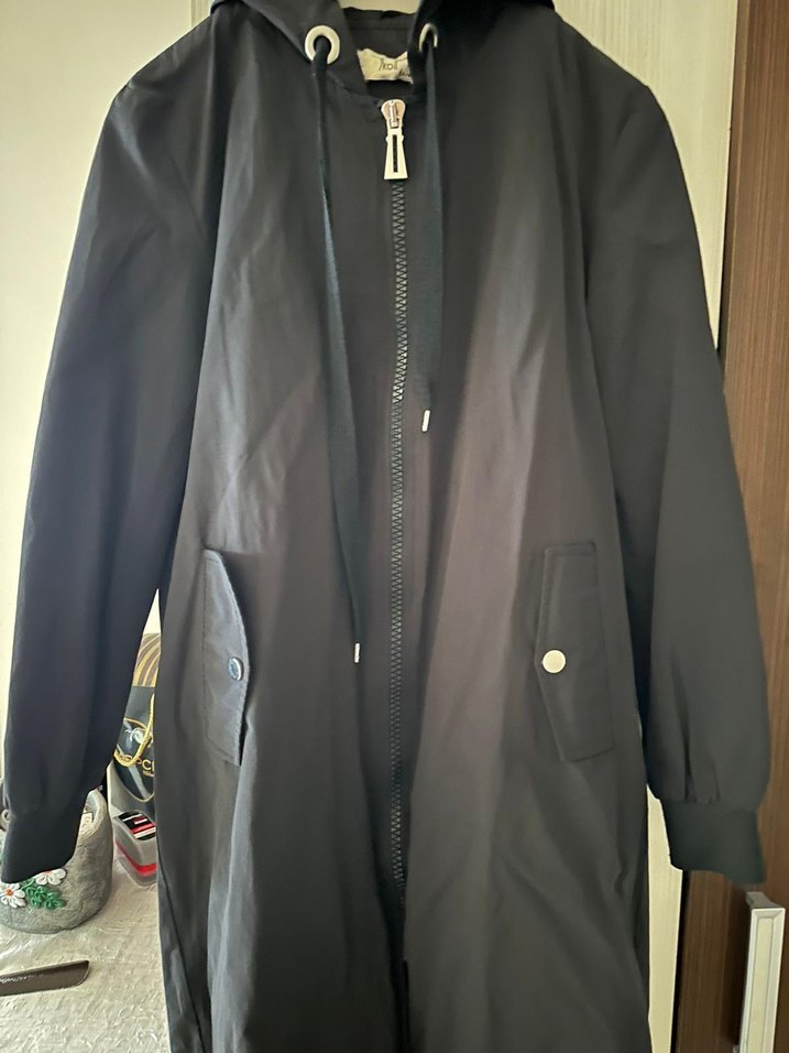 Fermuarlı, uzun ve siyah kadın yağmurluk uzun kollu,sade ve şık tasarım.
