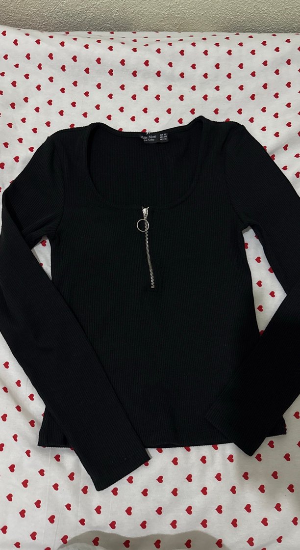 Fermuarlı Siyah Uzun Kollu Kadın badi