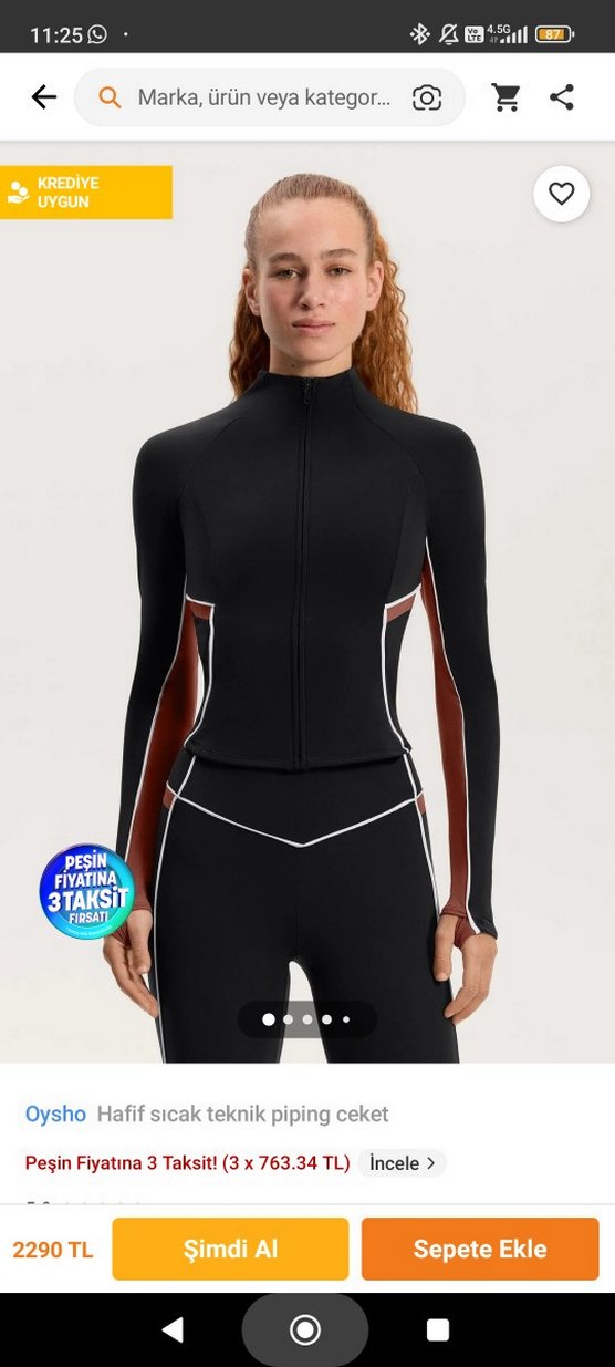 Fermuarlı, uzun kollu, yüksek yakalı siyah spor üst. Yanlarda baskılı detaylar ve başparmak deliği bulunur. Sokak stili ve spor için uygundur.
