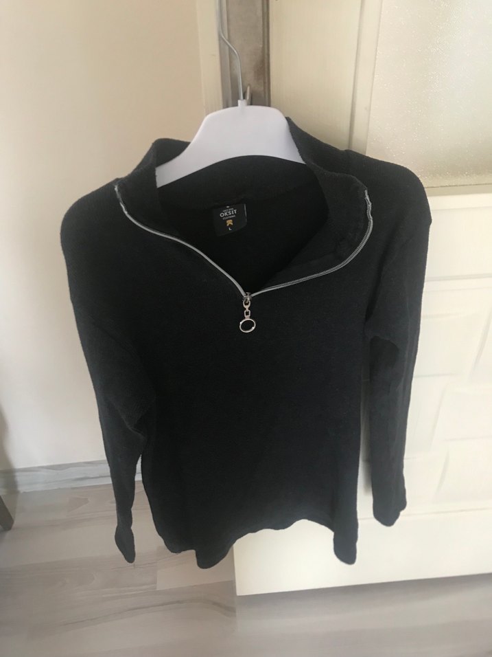 Fermuarlı, uzun kollu, siyah yarım balıkçı yaka, yumuşak ve sıcak kumaştan günlük kullanıma uygun kadın kazak.