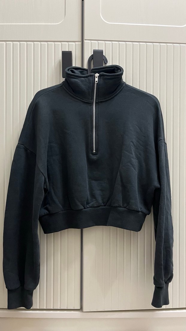 ÜRÜN TEMİZDİR S BEDENE DE OLUR Siyah, yüksek yakalı ve fermuarlı, fitted kesime sahip uzun kollu sweatshirt. Günlük kullanım için yumuşak ve sıcak kumaş.