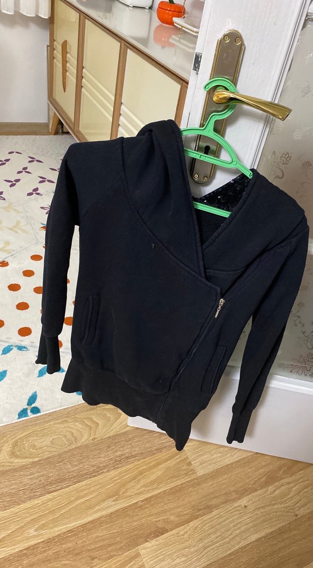 Siyah, yüksek yakalı, fermuarlı hırka Uzun kollu, midi boyda ve vücuda oturan kesimiyle rahat ve sıcak bir seçenek sunar.