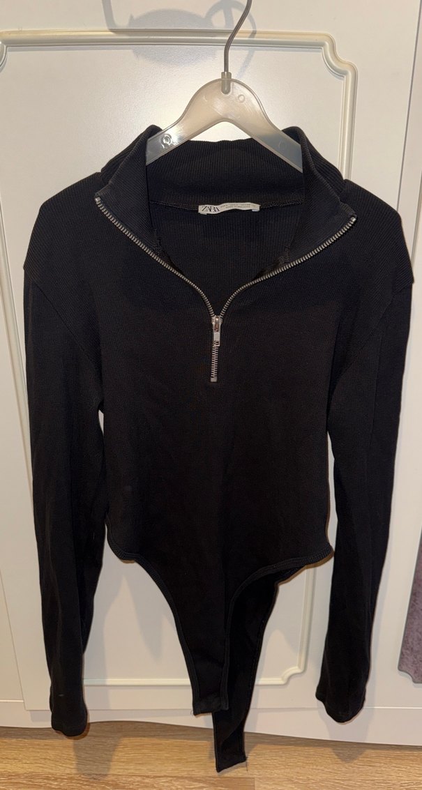 Fermuarlı yüksek yakalı, uzun kollu siyah body , yumuşak ve sıcak kumaştan, normal midi uzunluğunda, spor ve günlük tarzlar için uygundur.
