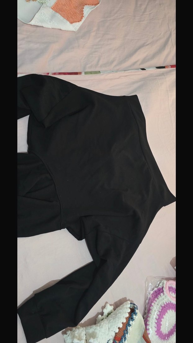 Fermuarlı detaylı, yüksek yakalı, uzun kollu, siyah kadın sweatshirt. İnce ve düz sentetik kumaştan, midi boyda, günlük kullanım için uygundur. Standart beden