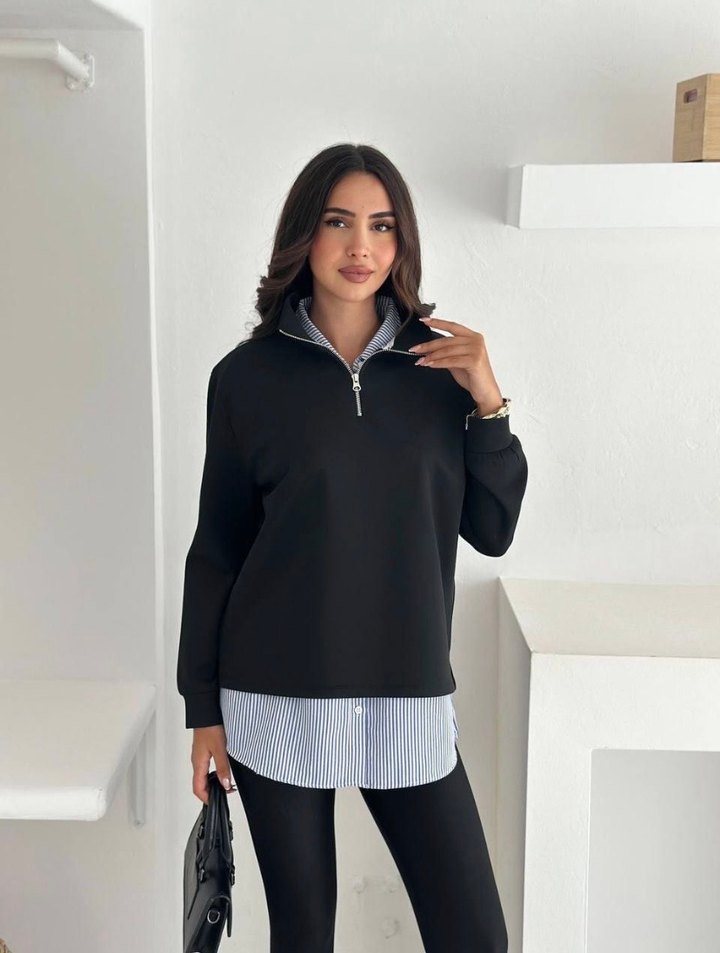 Fermuarlı yüksek yakalı, uzun kollu siyah sweatshirt. Rahat kesim ve kısa boyda, yumuşak ve sıcak kumaştan üretilmiştir. Günlük sokak stili için uygundur. S M L XL bedenleri mevcuttur.