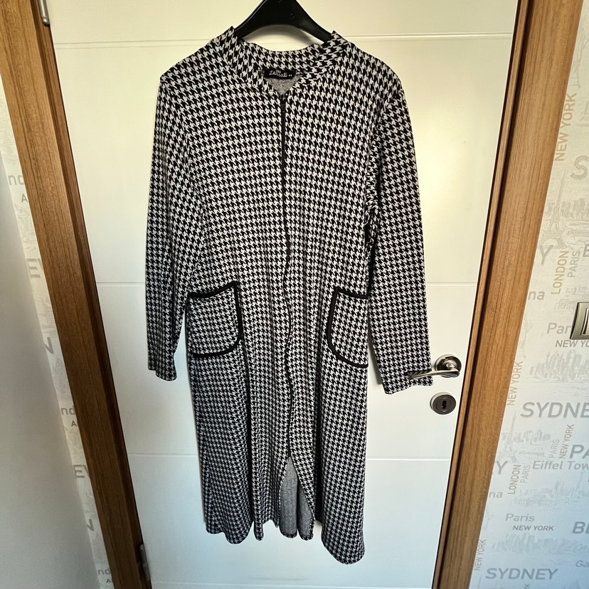 Düğmeli, ekose desenli, uzun gri ceket. Uzun kollu, regular fit ve notched lapel yakalıdır. Sentetik kumaştan günlük kullanıma uygundur. Bir kere giyildi