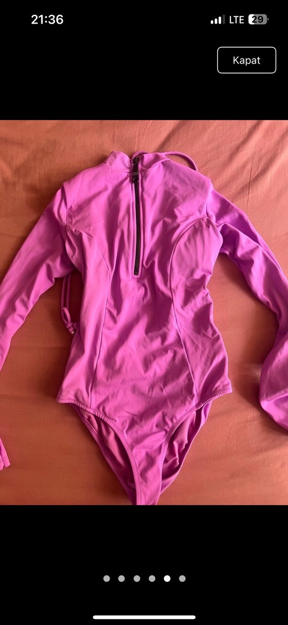 Fermuarlı, uzun kollu ve fit kesime sahip pembe mayo. Pastel tonlarda, midi boyda ve günlük sokak stili için uygundur.