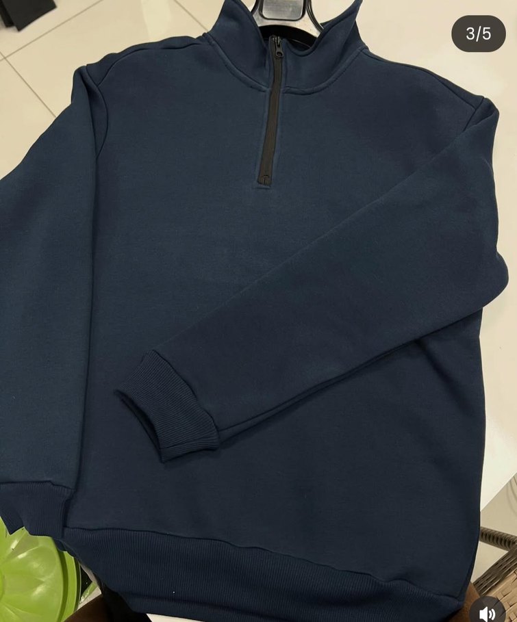 Erkek sweatshirt, fermuarlı yarım balıkçı yaka ve uzun kollu. Yumuşak ve sıcak kumaştan, koyu gri renkte, regular fit. Günlük rahat kullanıma uygun.