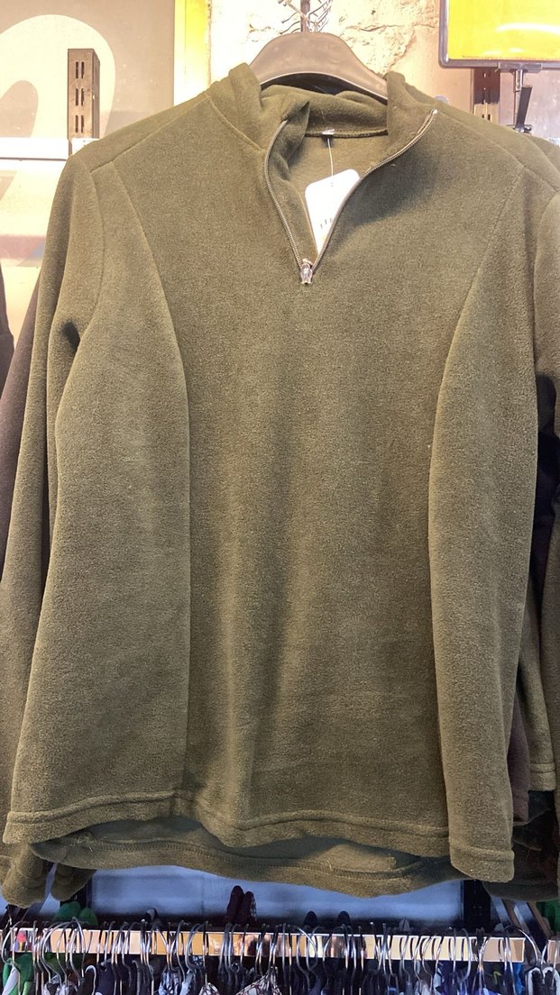 Erkekler için fermuarlı yarım boğazlı, uzun kollu, bol kesim, haki renk polar sweatshirt. Günlük rahat sokak stili için uygundur.