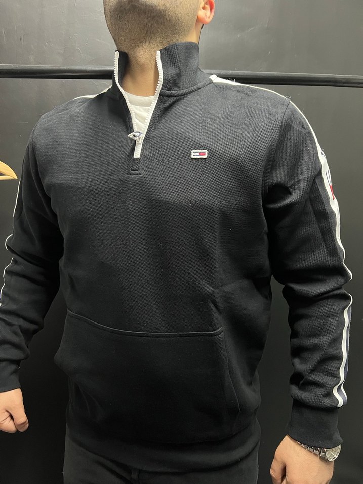 Yarım boğaz, fermuarlı, uzun kollu ve fitted kesime sahip erkek sweatshirt. Yumuşak fleece kumaştan, günlük kullanıma uygun sokak tarzı. Kollarda gri şerit ve göğüste küçük logo bulunur.