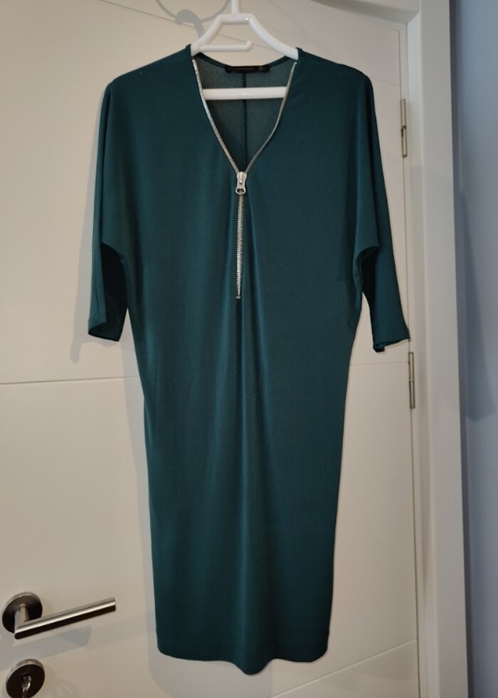 Fermuarlı Yeşil Elbise