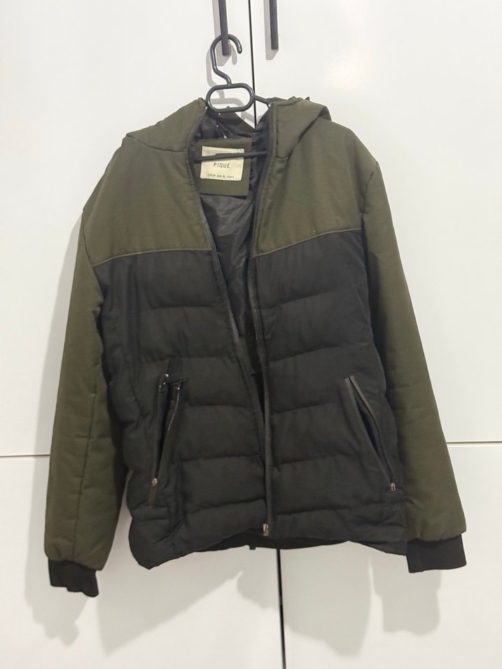 Fermuarlı, uzun kollu, yeşil erkek mont. Notch yaka ve fitted kesimiyle günlük kullanım için yumuşak ve sıcak kumaştan üretilmiştir.