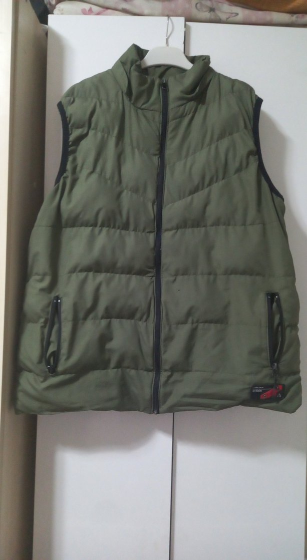 Fermuarlı cepleri ve yüksek yakası olan yeşil renk, yumuşak ve sıcak kumaştan üretilmiş erkek yelek. Günlük kullanıma uygun, rahat ve şık üç yerde minnacik delikleri var.