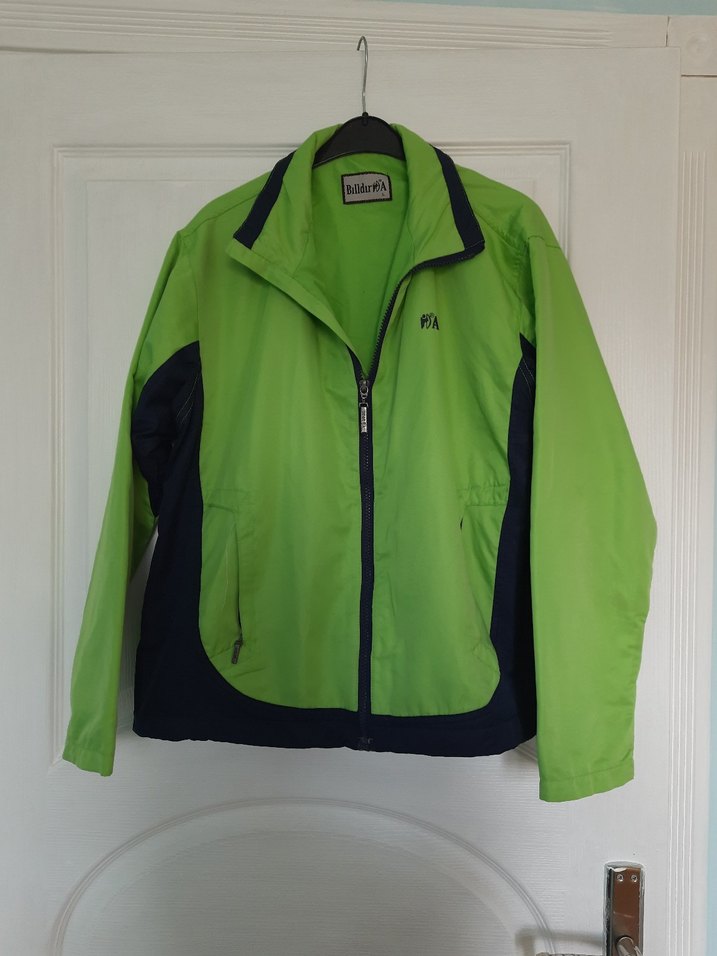 Fermuarlı önden kapamalı, uzun kollu, parlak yeşil kadin ceketi. Yumuşak ve sıcak kumaştan, sokak tarzı ve dış mekan kullanımı için uygundur.