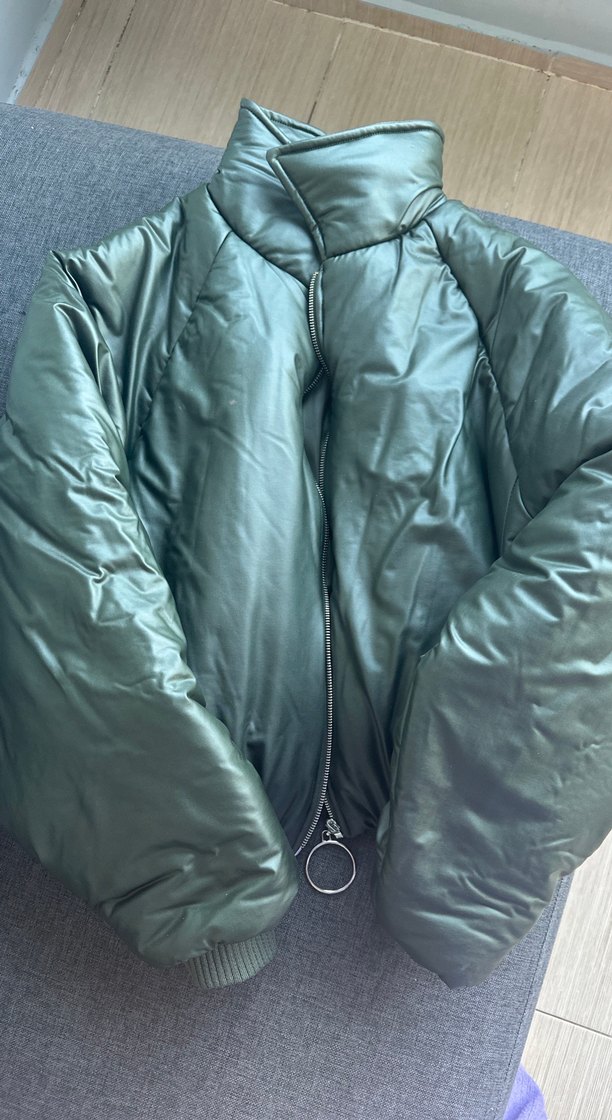 Fermuarlı Yeşil Kadın Kışlık Mont
