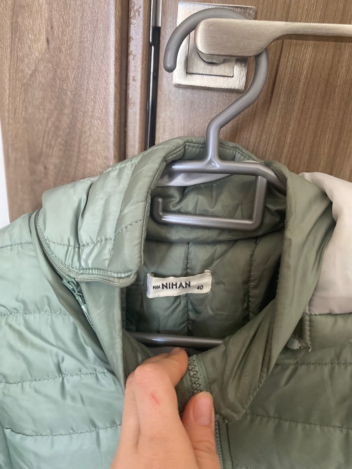 Fermuarlı, yeşil notched lapel yakalı, uzun kollu, yumuşak ve sıcak kumaştan kadın kışlık cekettir. Günlük kullanıma uygundur. NIHAN etiketi bulunur. ❄️