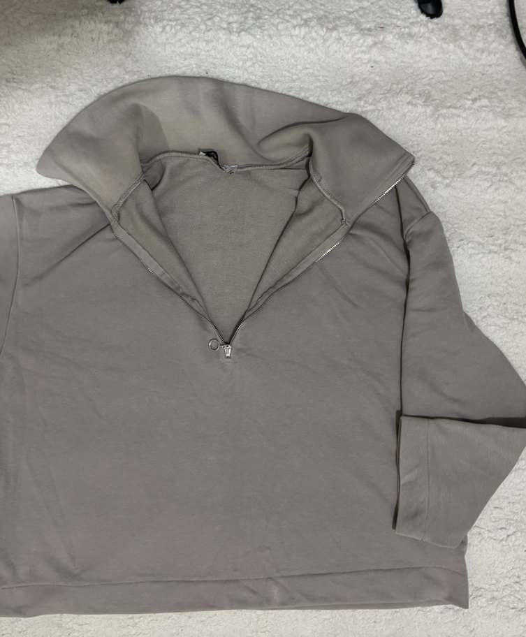 kadın sweatshirt, fermuarlı yüksek yakaya, uzun kollara ve bol kesime sahiptir. Yumuşak ve sıcak kumaştan üretilmiş, günlük kullanım için rahat ve sokak stili uyumlu.