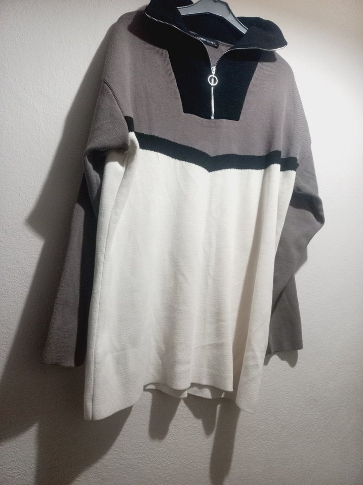 Yarım fermuarlı yüksek yakalı, uzun kollu ve bol kesim kadın kazak. örgü dokusu ile rahat ve sıcak tutar. Günlük kullanıma uygun sokak tarzı.