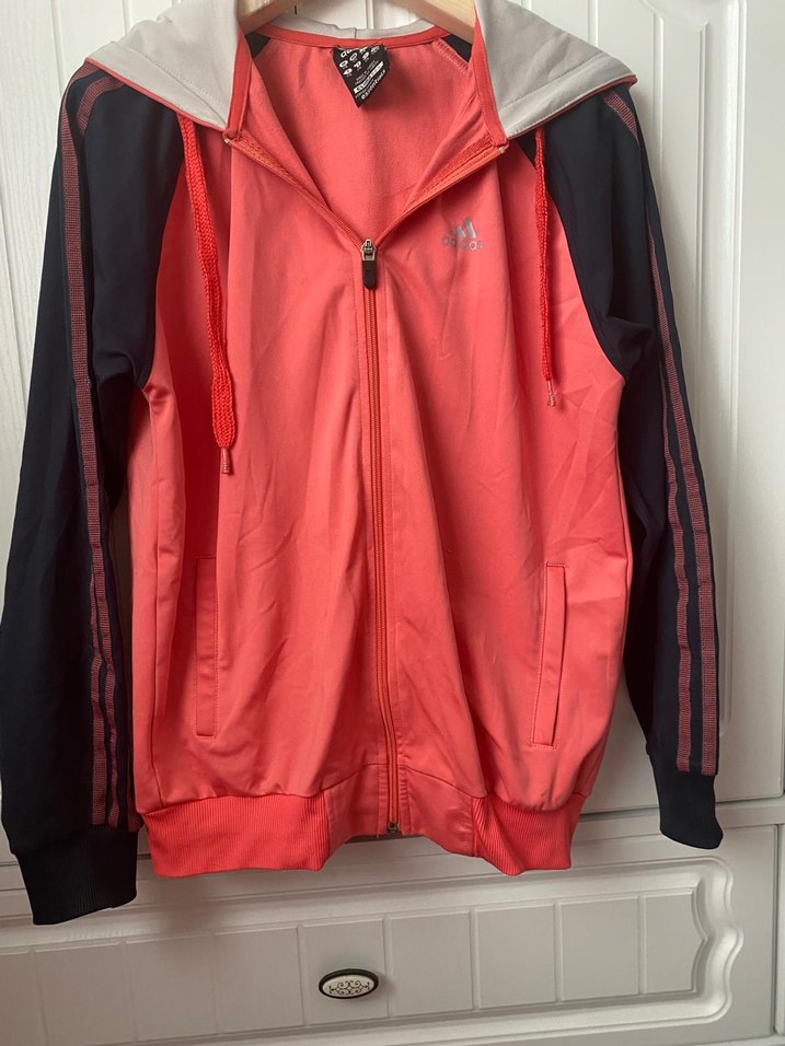 Fermuarlı, yüksek yakalı ve uzun kollu bu pembe ceket, koyu renk çizgili detaylara sahiptir. Normal boyda ve yumuşak, sıcak tutan kumaştan üretilmiştir.