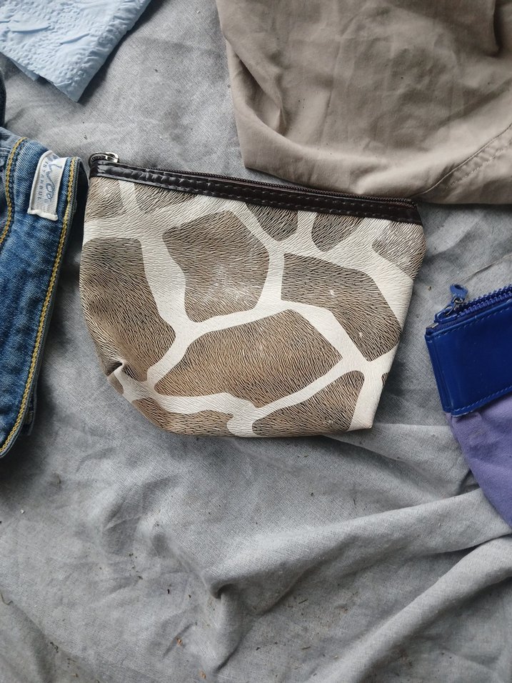 Kahverengi, zebra desenli ve fermuarlı çocuk cüzdanı, sokak modasına uyum sağlar. Bİ KISMINDA MÜREKKEP LEKEESİ MEVCUT FPTOĞRAFDA GÖZÜKÜYOR