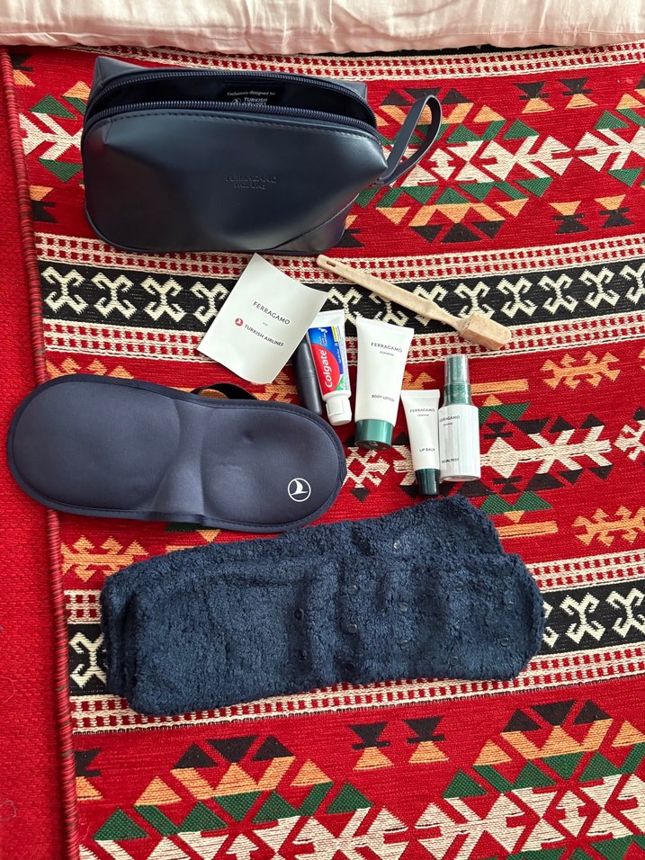 Seyahat bakım çantası ;temizleyici jel, nemlendirici, dudak kremi, yüz spreyi, diş fırçası ve yumuşak bir saç bandı içerir, kompakt seyahat çantasında. Hiç kullanılmadı markası salvator ferragamo