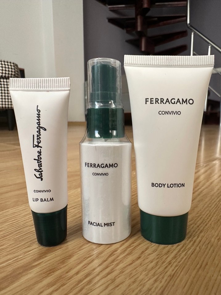 Ferragamo Convivio bakım seti, dudak balsamı, yüz spreyi ve vücut losyonu içerir. 4 set mevcuttur. Her bir set 150tl dir. Son kullanma tarihlerinden dolayı fiyat uygun tutulmuştur.