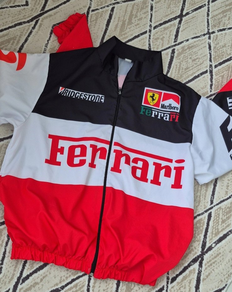 Fermuarlı, kruvaze yaka ve baskılı Ferrari ile Bridgestone detaylı kırmızı erkek sweatshirt. Spor tarzına uygun, rahat kesim.