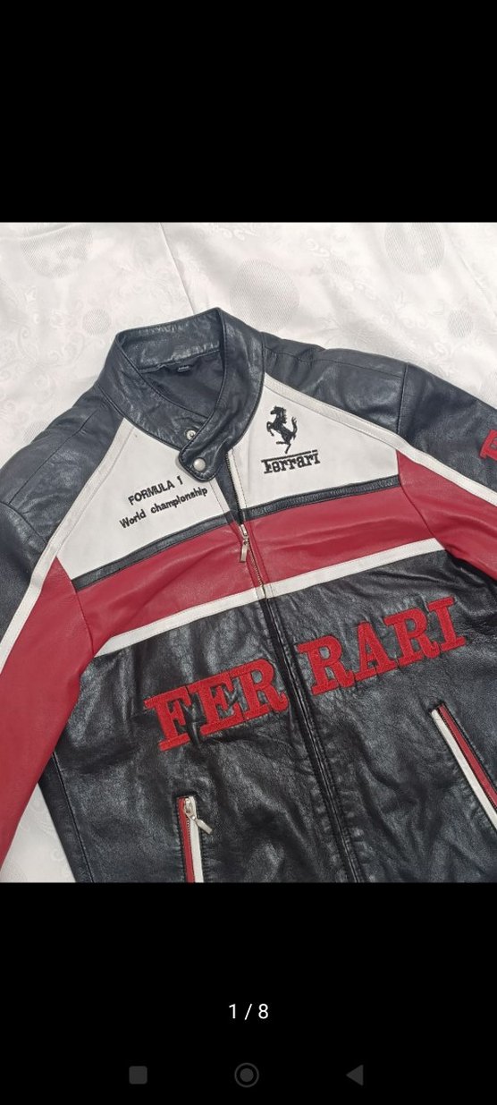 Ferrari deri ceket .Hakiki deri cekettir. Herhangi bir yırtığı söküğü yoktur. Çok tarz ve muaazzam bir kuzu derisidir. ( En:53 cm Boy:67 cm ) Temiz bir cekettir sadece beyaz kısımlarında biraz siyahlık mevcuttur resimlerini ekledim