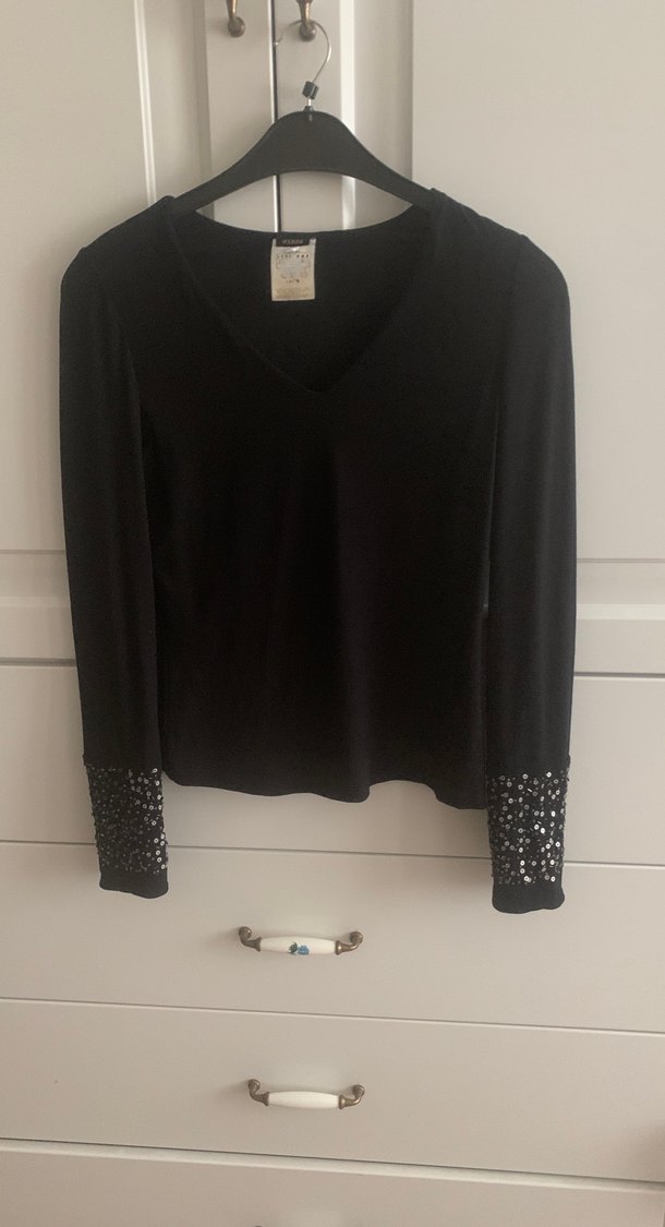 Ferre marka Siyah viskon V Yaka Uzun Kollu Pul Detaylı Bluz M