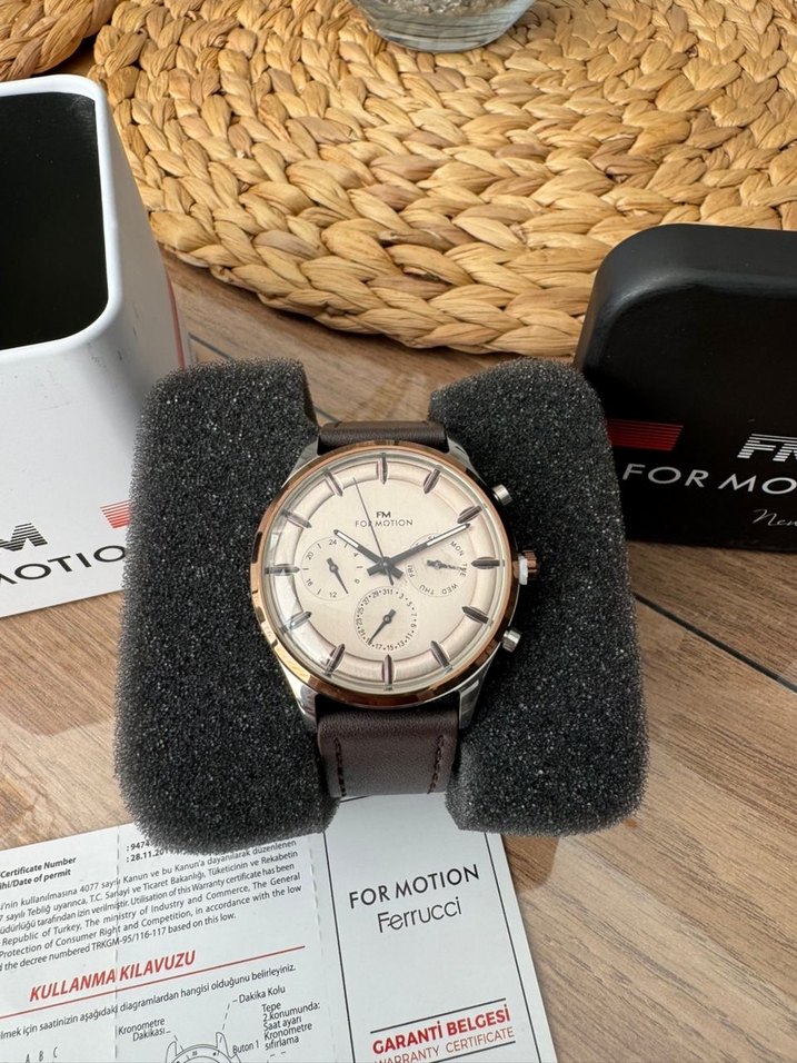Ferrucci erkek saat, kahverengi deri kayış ve gri tonlu kadran ile klasik modern tasarıma sahiptir. Kronograf özellikli, kullanım kılavuzu ve garanti belgesi ile birlikte gelir. ⌚