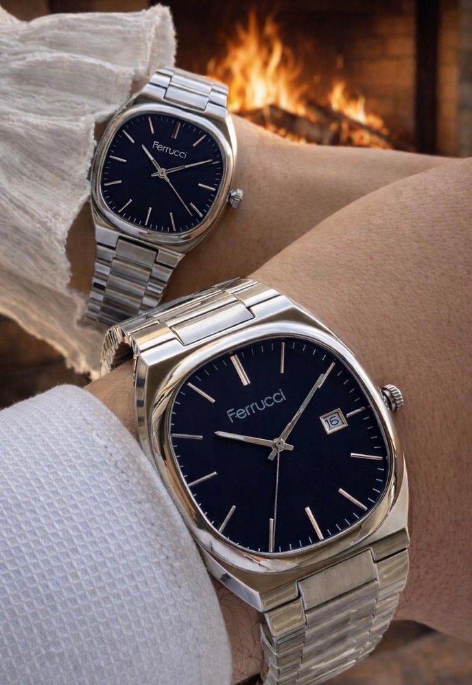 Ferrucci Gri Kadranlı Modern Klasik Çift Saati