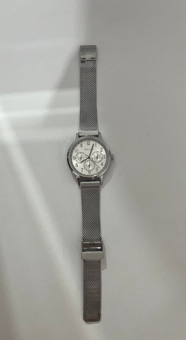 Ferrucci bay bayan saat orjinal garantisiz kullanima engel olmayan hafif bi çizigi mevcut onunda dışında sorunsuz pili değiştirilecek 1. 2 kere tek kullanıldı gümüş renk