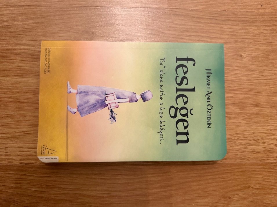 Hikmet Anıl Öztekin'in 'feslegen' adlı şiir kitabı, pastel renkli kapakta baharat tutan bir figür içerir. 'Üz' olana heptun o uzun hikayesi...' ifadesi yer alır.