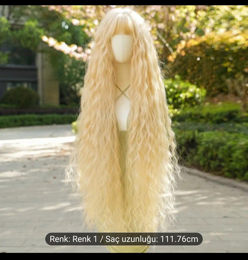 , bohem tarzda fiber sentetik kadın peruk. Saç uzunluğu 111,76 cm.ısıya dayanıklı şekil verilebiliyor.boyanmaz
